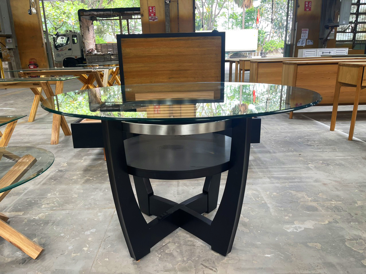 Nội thất bên trong sử dụng chất liệu gỗ là chủ yếu, thể hiện được rằng chủ nhân của ngôi nhà là một người khá ưa chuộng nét đẹp của những điều cổ điển. Nhưng chất liệu gỗ cổ điển kết hợp cùng các phụ kiện như đèn treo, hồ cá hay tủ gỗ một cách hài hòa lại làm bật lên được sự sang trọng và cũng không kém phần hiện đại cho nội thất tổng thế của căn nhà.